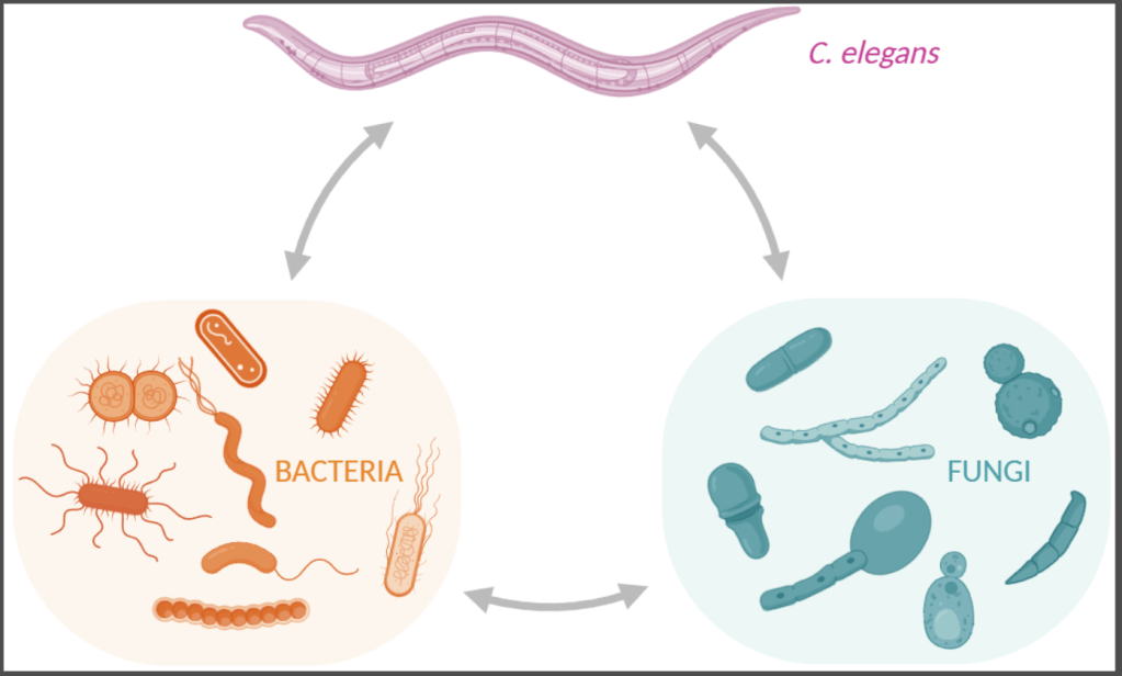 All organisms are associated with microorganisms (i.e. the microbiome) that can influence their physiological processes. The importance of the bacterial component of the microbiome is well established, but the the fungal members of the microbiome are less well understood. We are using the nematode Caenorhabditis elegans, which lives in decaying organic plant matter, as a model to understand the interaction of its associated fungi with the worm, but also with the bacterial members of the microbiome. In particular, we are interested in understanding the genetic components of both the associated fungi and the worm host that shape this interaction. On this topic we are collaborating with Dr. Carola Petersen and Prof. Dr. Hinrich Schulenburg at Kiel University https://evoecogen-kiel.de/.